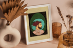 This 8 x 12 inch fine art print is beautifully reproduced on Hahnemühle Photo Rag paper, ensuring exceptional quality and archival properties. A special gold-toned effect on the border replicates the luxurious gold foil present on the original hand-painted artwork, adding a subtle shimmer to this distinguished portrait.